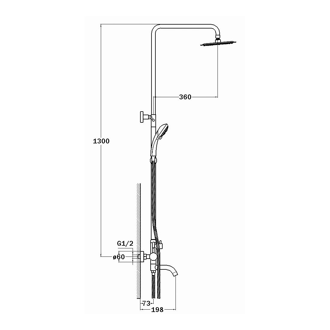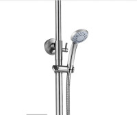 Комплектация: смеситель, душевая штанга, верхний душ, душевая лейка, шланг, декоративные отражатели, эксцентрики;