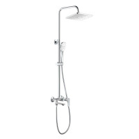 Комплектация: верхний душ, душевая штанга, держатель душевой лейки, ручной душ, смеситель, шланг;