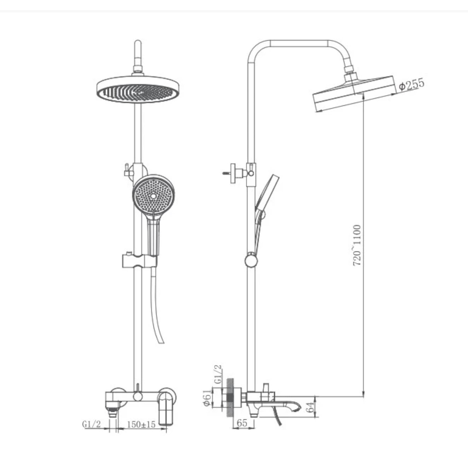 Регулируемая по высоте душевая штанга и лейка позволяют подобрать оптимальный режим душа для каждого пользователя. Вы можете настроить высоту и угол наклона душевой лейки, что делает использование этой душевой системы еще более удобным и приятным.