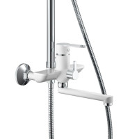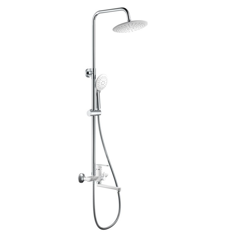 Комплектация: верхний душ, душевая штанга, держатель душевой лейки, ручной душ, смеситель, шланг;