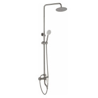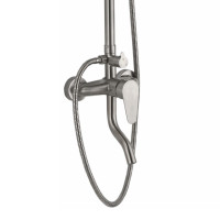 Комплектация: верхний душ, душевая штанга, держатель душевой лейки, ручной душ, смеситель, шланг;