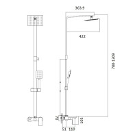 Комплектация: верхний душ, душевая штанга, держатель душевой лейки, ручной душ, смеситель, шланг;