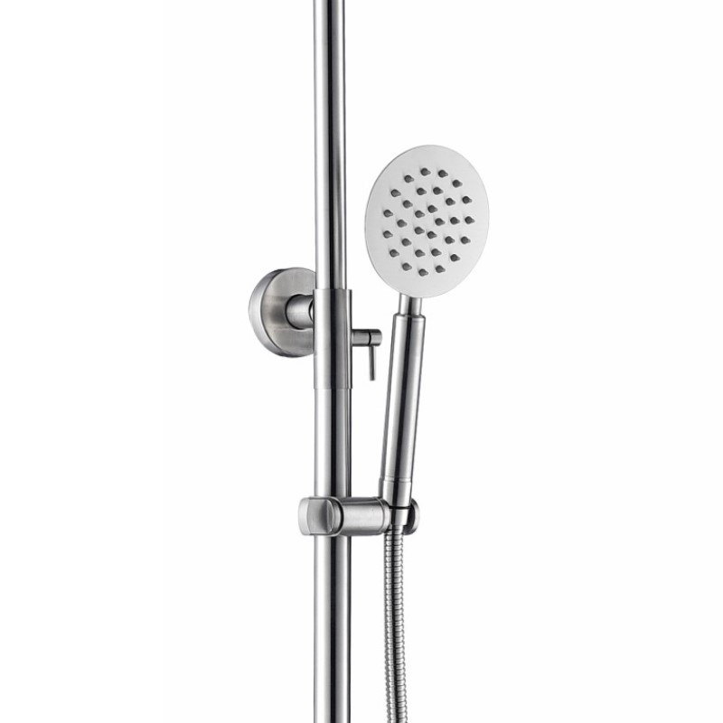 Душевая система Haiba. Изготовлена из высококачественной нержавеющей стали. Прекрасный тропический душ. Излив для наполнения ванны. Душевая штанга регулируется по высоте от 93 см до 125,5 см.