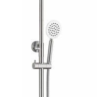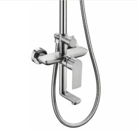 Комплектация: верхний душ, душевая штанга, держатель душевой лейки, ручной душ, смеситель, шланг;