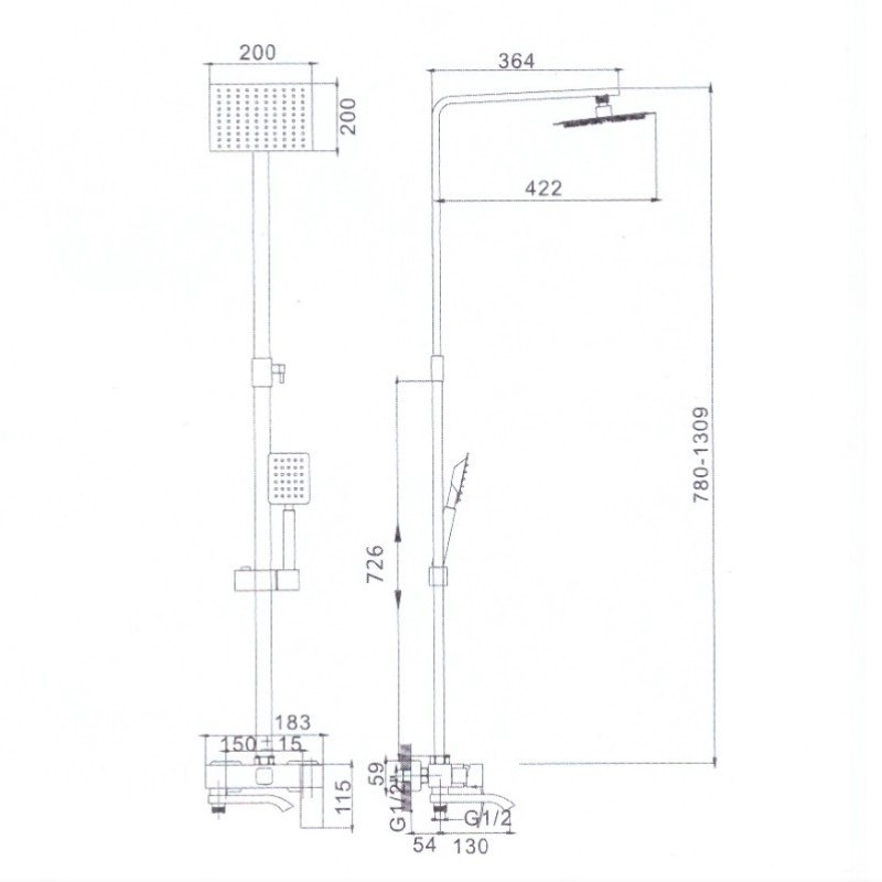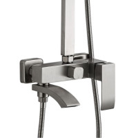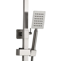 Комплектация: верхний душ, душевая штанга, держатель душевой лейки, ручной душ, смеситель, шланг;