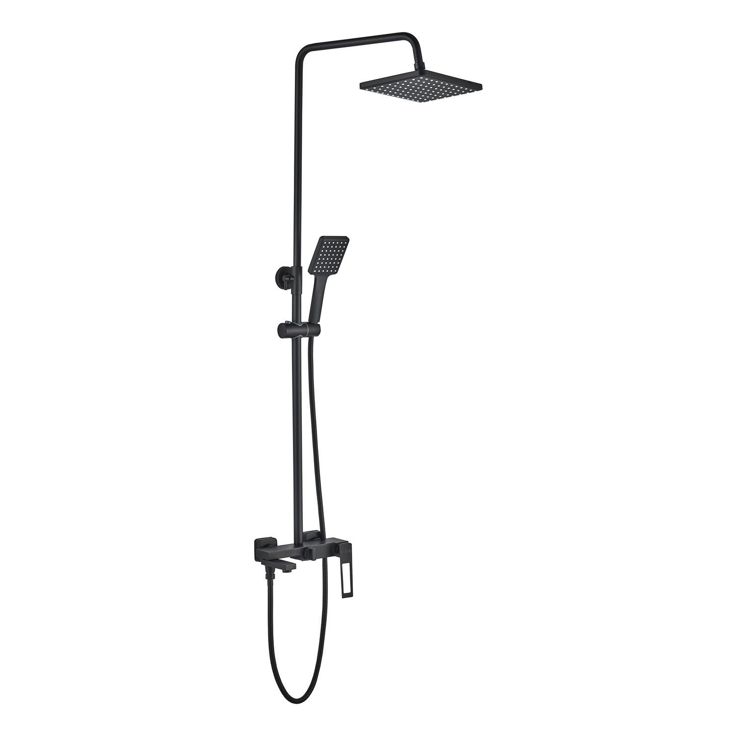 Комплектация: верхний душ, душевая штанга с держателем лейки, ручной душ, смеситель, шланг;