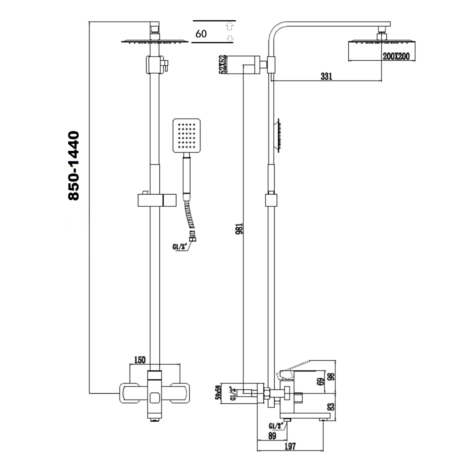 Комплектация: верхний душ, душевая штанга с держателем лейки, ручной душ, смеситель, шланг;