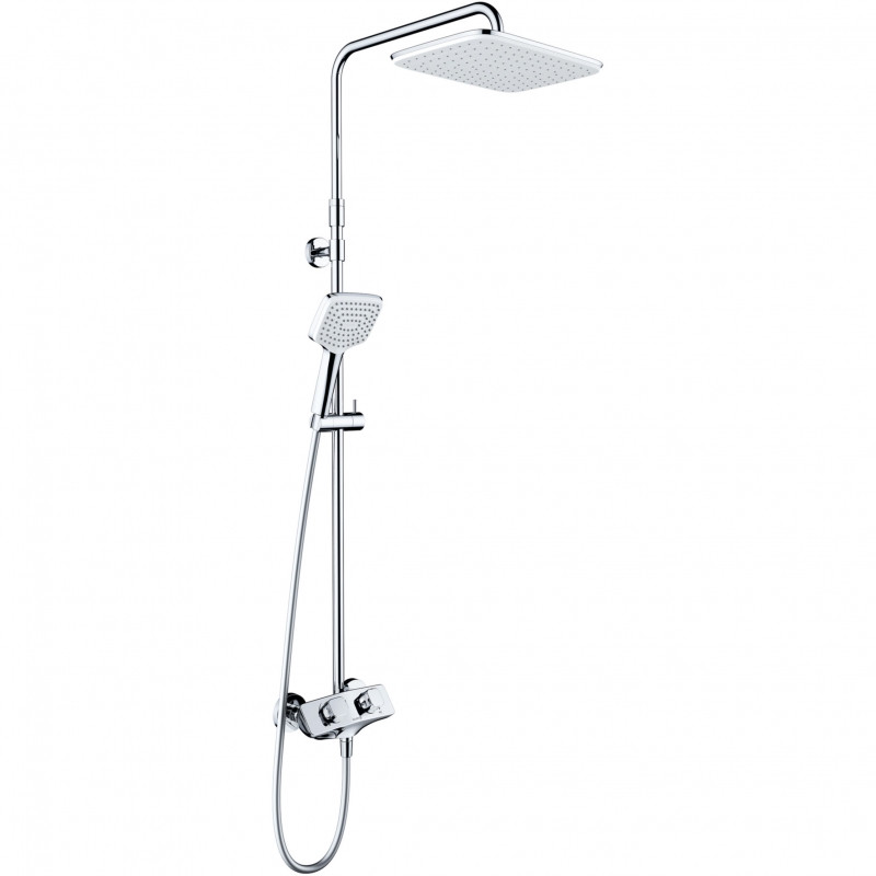 В комплекте поставки: смеситель, верхний душ, душевая лейка, душевой шланг, душевая штанга с держателем лейки, комплект креплений
