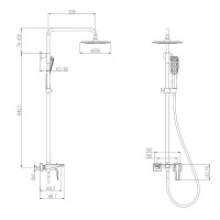 Комплектация: смеситель, верхний душ, штанга, держатель душевой лейки, душевая лейка, шланг, эксцентрики, декоративные отражатели;