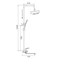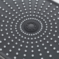 Верхний душ размером 300x190 мм из ABS-пластика регулируется по высоте благодаря телескопической штанге и по наклону с помощью встроенного шарнира, что обеспечивает максимальный комфорт и удобство использования. Самоочищающиеся силиконовые форсунки предотвращают образование известкового налета и сохраняют чистоту и силу потока воды.