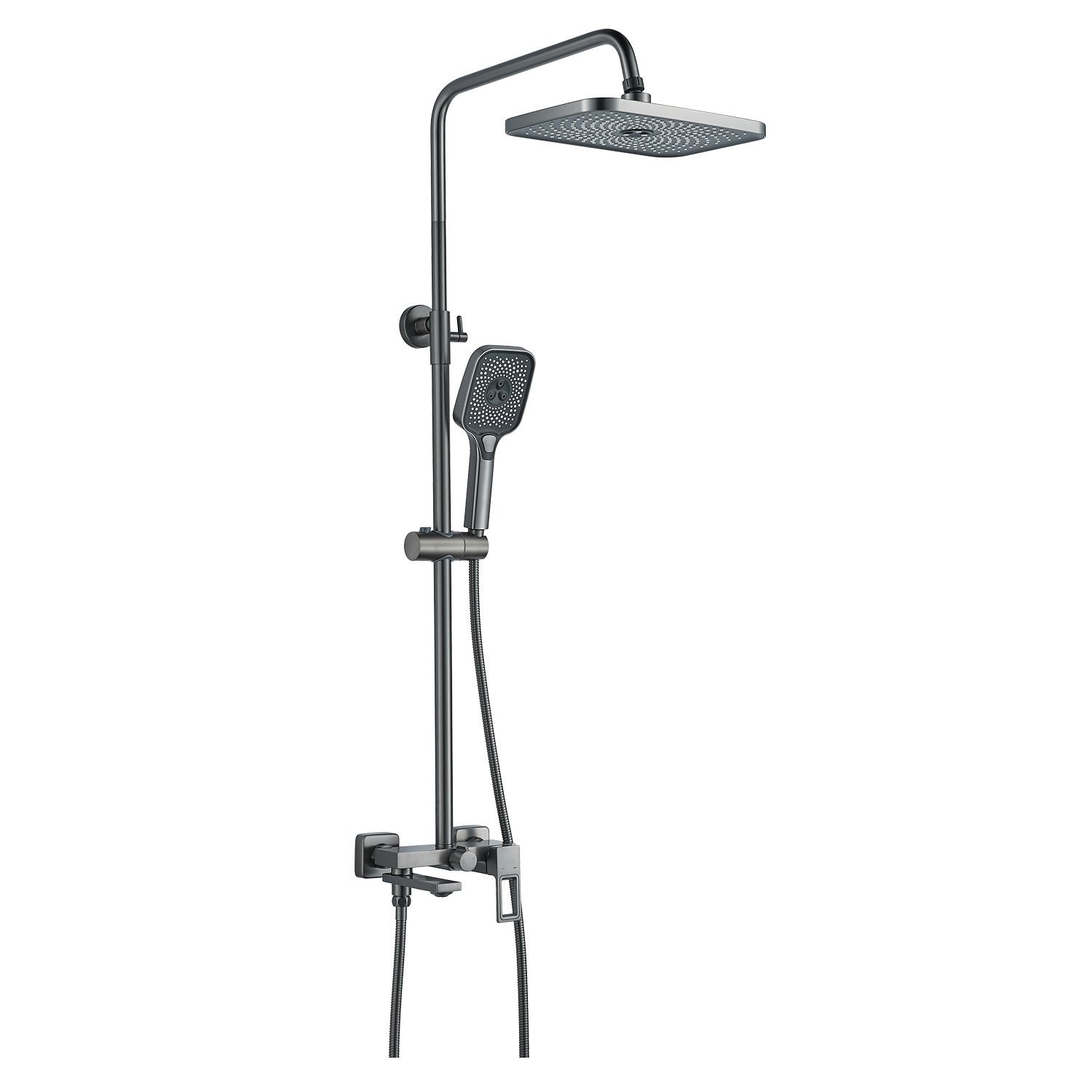 Душевая система Raffine F3696T в цвете "оружейная сталь" - идеальный выбор для вашей ванной комнаты! Изготовленная из высококачественной латуни, она обеспечивает прочность и долговечность использования.