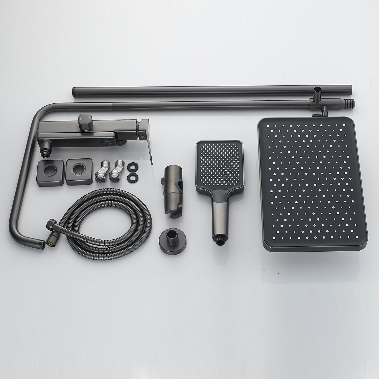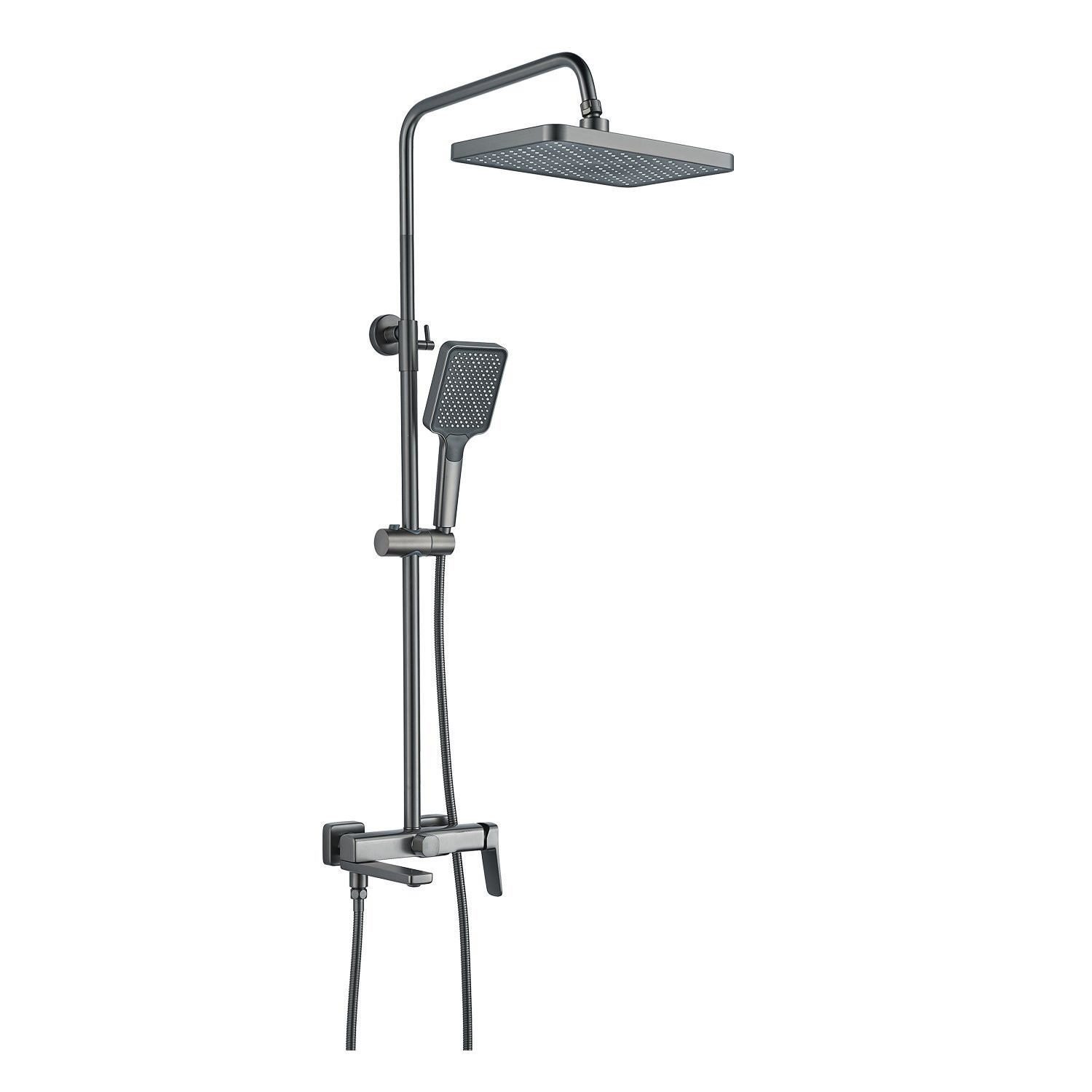 Душевая система Raffine F3699T в цвете "оружейная сталь" - идеальный выбор для вашей ванной комнаты! Изготовленная из высококачественной латуни, она обеспечивает прочность и долговечность использования.