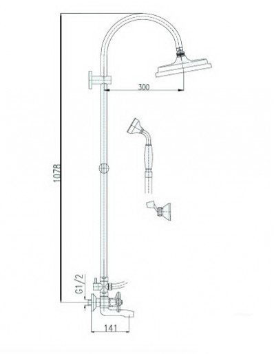 Комплектация: смеситель, душевая лейка, шланг для душа, держатель душа, верхний душ, инструкция;