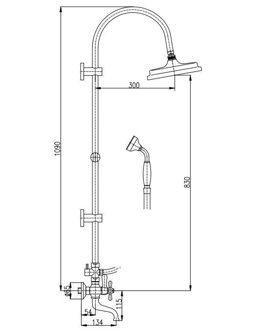 Комплектация: смеситель, душевая лейка, шланг для душа, держатель душа, верхний душ, инструкция;