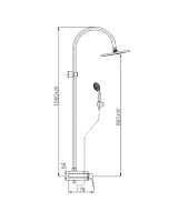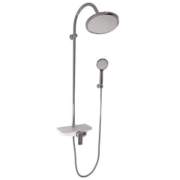 Комплектация: смеситель, душевой шланг, душевая лейка, штанга, верхний душ, инструкция;