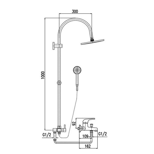Комплектация: смеситель, душевая лейка, шланг для душа, держатель душа, верхний душ, инструкция;