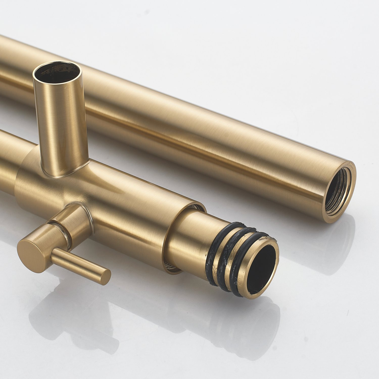 Душевая система Rose - это стильное и функциональное решение для вашей ванной комнаты. Система выполнена в роскошном цвете “золотой сатин”, который придаст вашей ванной изысканности и благородства.