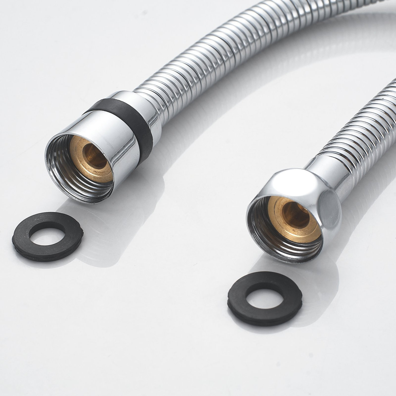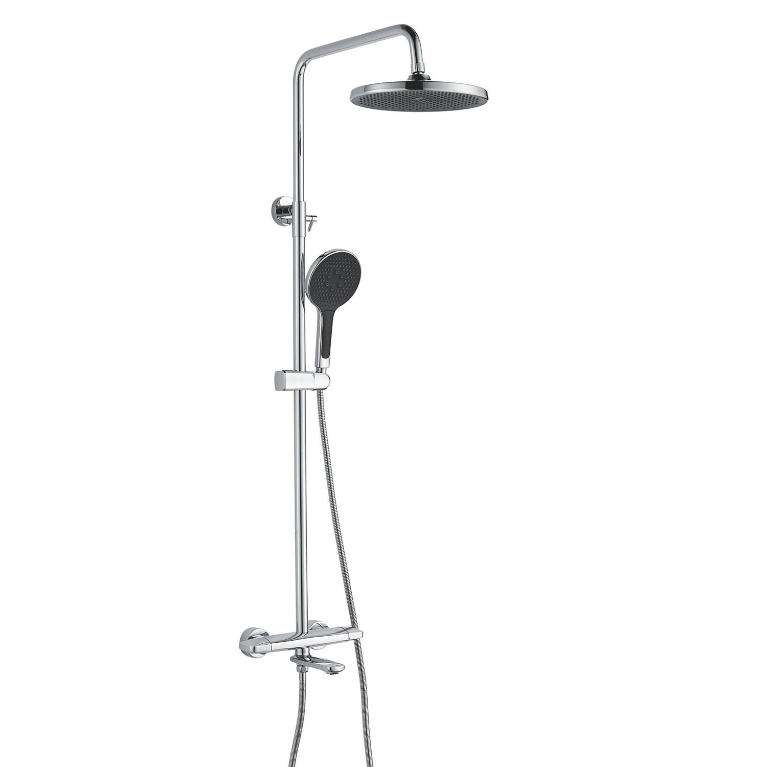 Комплектация: смеситель, верхний душ, штанга с держателем душевой лейки, душевая лейка, шланг, эксцентрики;