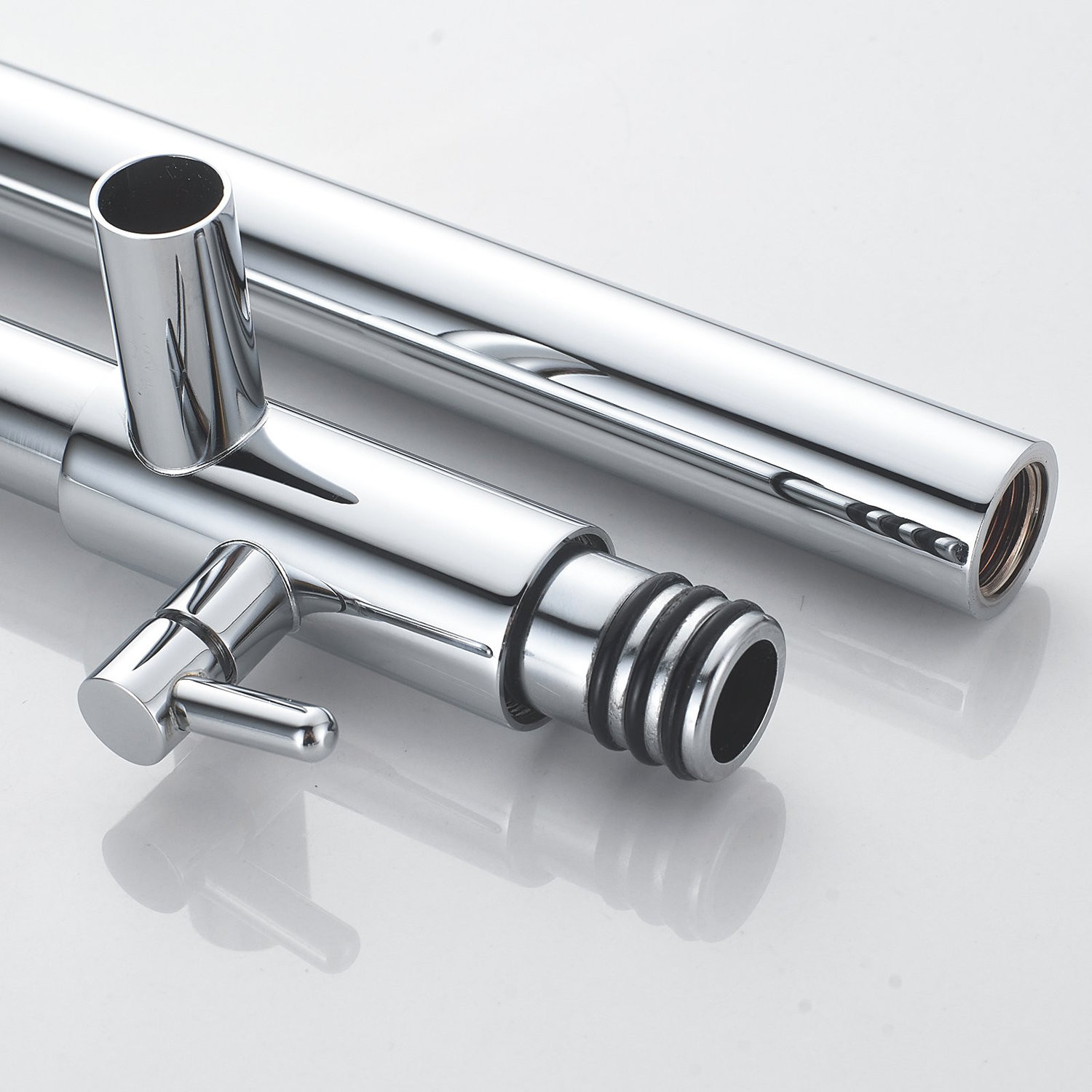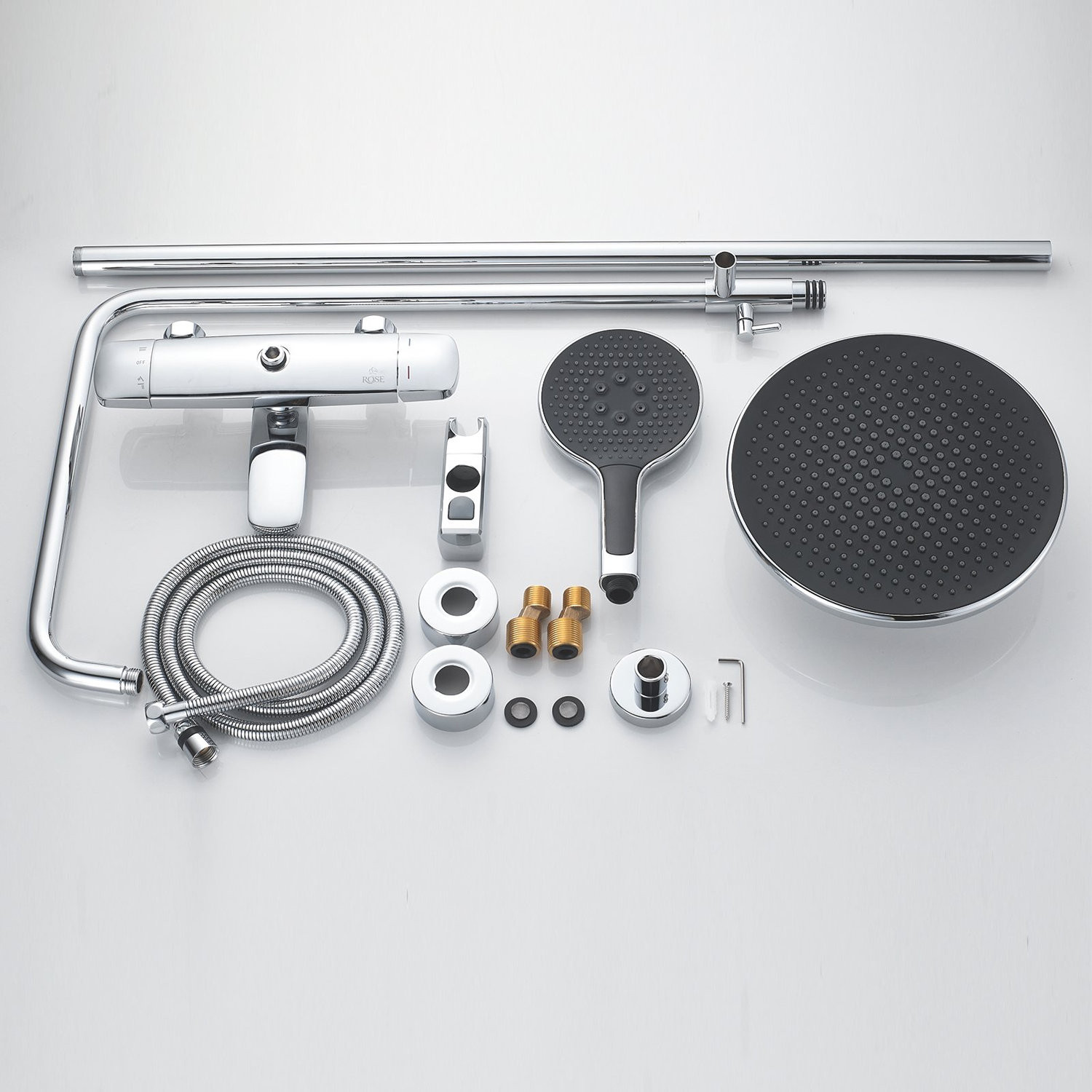 Душевая система Rose R3936 в блестящем цвете хром - идеальный выбор для современного интерьера ванной комнаты. Изготовленная из высококачественной латуни, она обеспечивает прочность и долговечность использования. Верхний душ диаметром 250 мм из ABS-пластика с самоочищающимися силиконовыми форсунками подарит истинное удовольствие от принятия душа благодаря равномерному распределению воды и исключению возможности образования известкового налета. Благодаря регулировке по высоте верхнего душа, каждый член семьи сможет настроить его под свой рост для максимального комфорта.