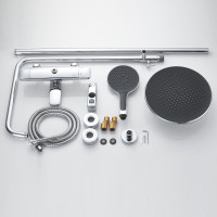 В комплект поставки включены эксцентрики, которые помогут быстро и без проблем установить душевую систему. Механизм работы основан на керамическом картридже и рычажном управлении, что обеспечивает плавность хода и точность настройки температуры воды.