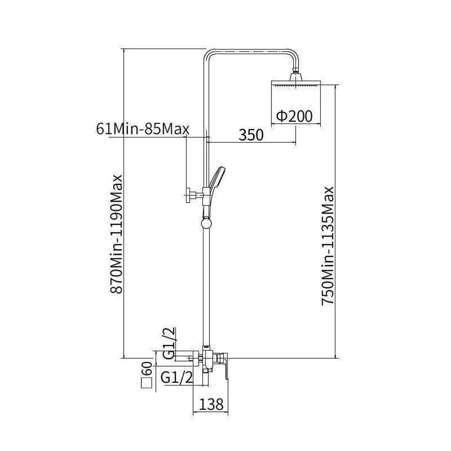 Размер верхнего душа, см: 20x20;