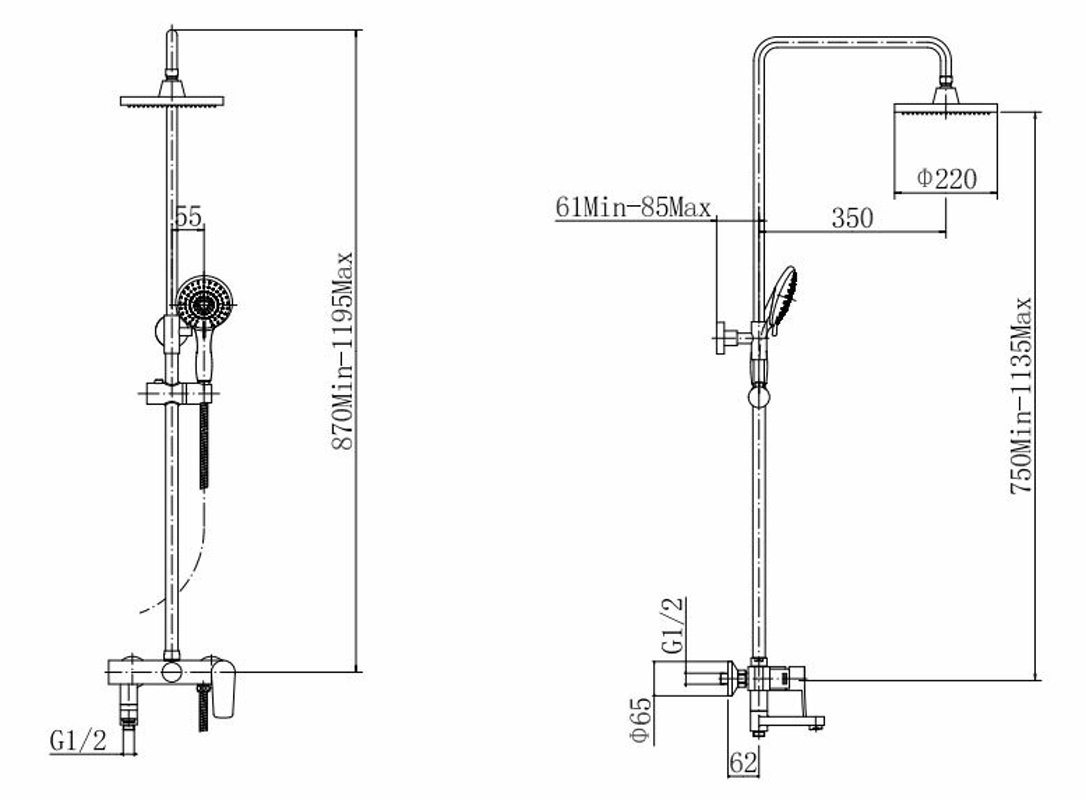 штанга: сталь SUS201, хром, H=750-1135 мм