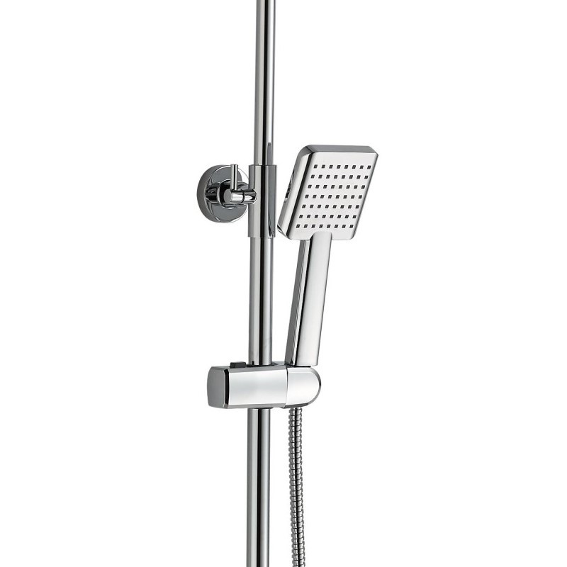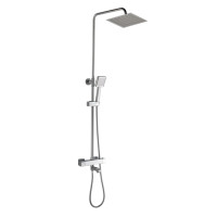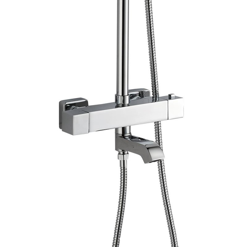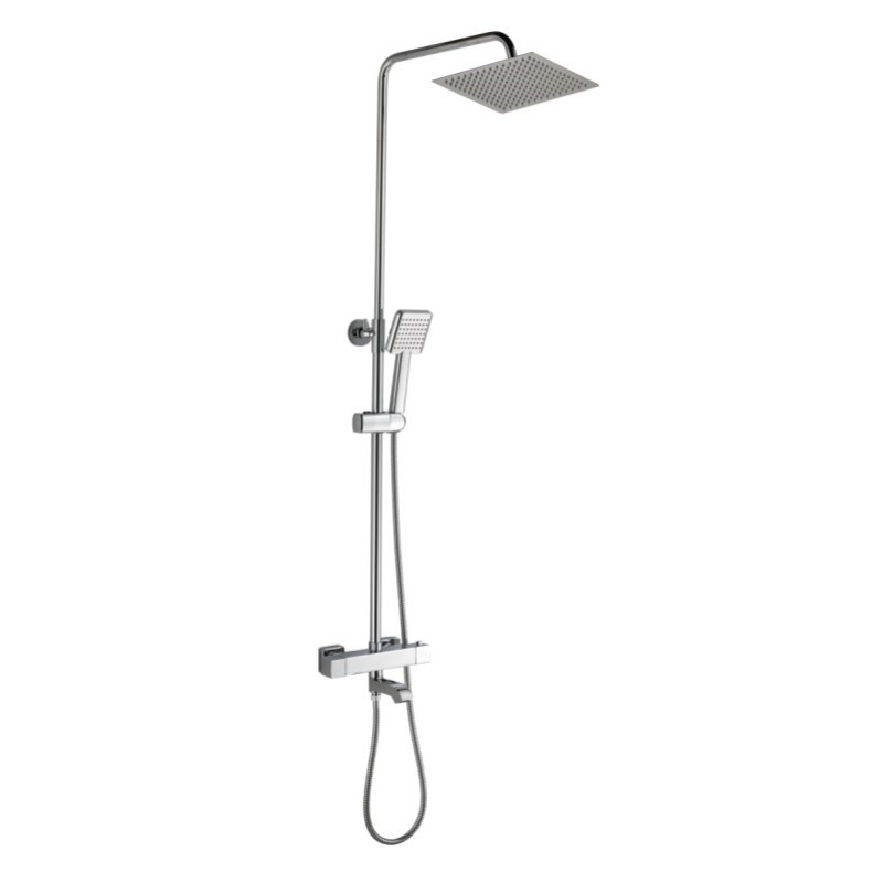 Комплектация: верхний душ, душевая штанга, держатель душевой лейки, ручной душ, смеситель термостатический, шланг;