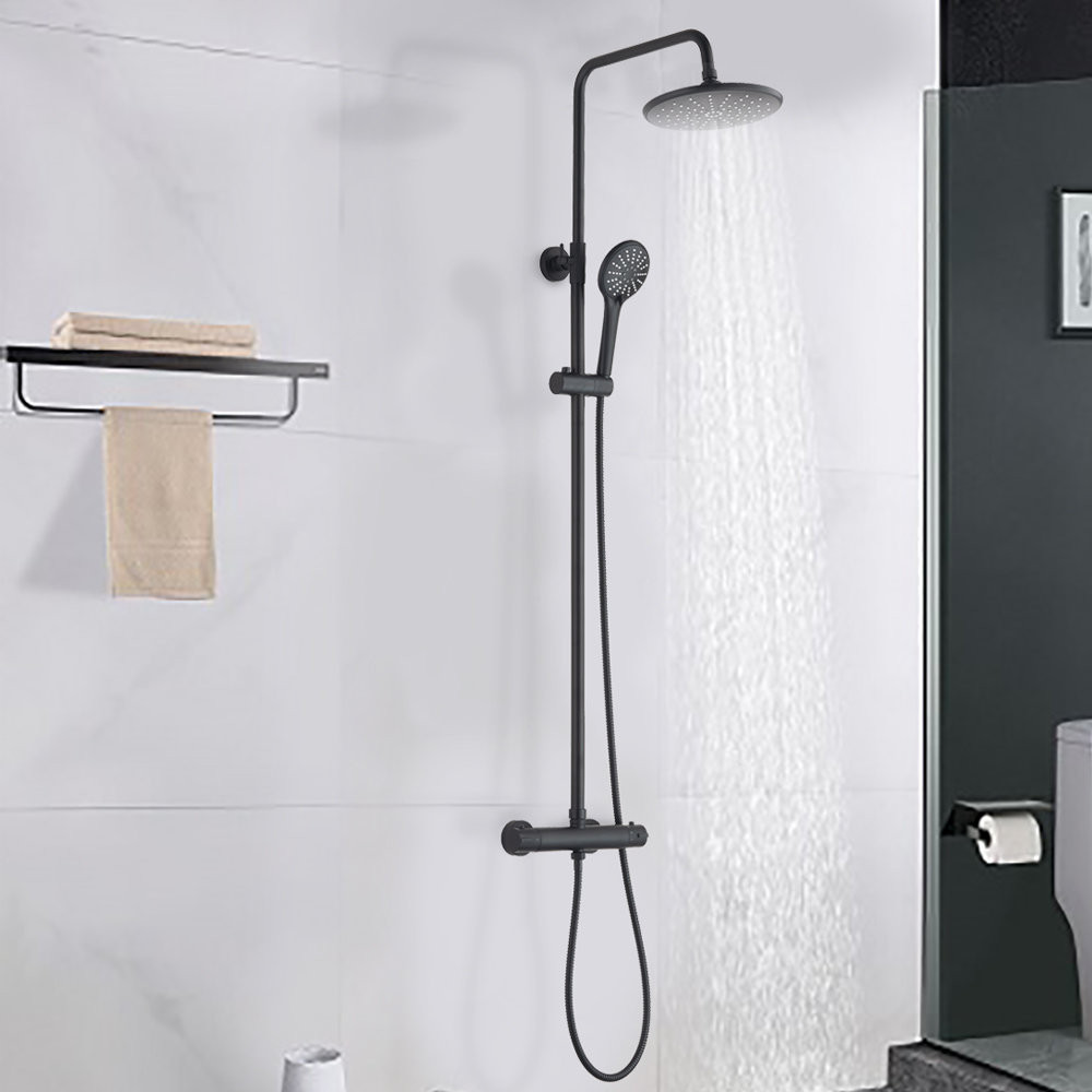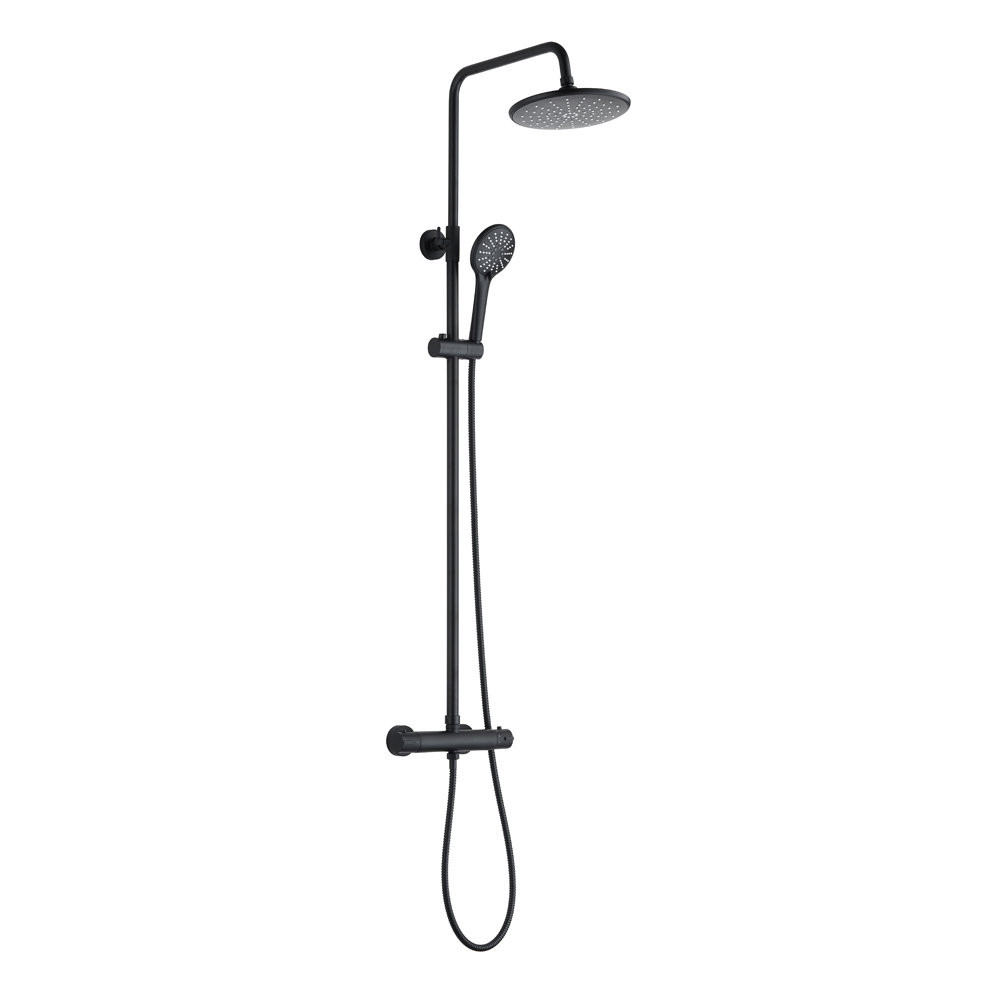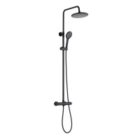 Душевая система с термостатом Olive's TERMO 34291TMB, черный. Материал: латунь. Управление: термостат. Полочка: нет. Форма верхнего душа: круглая. Излив для наполнения ванны: нет.