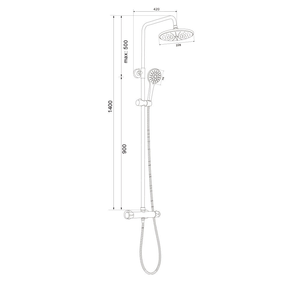 Комплектация: смеситель, верхний душ, штанга, держатель душевой лейки, душевая лейка, шланг, эксцентрики, декоративные отражатели;