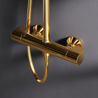 Новое прочтение культовой коллекции X-Joy. Еще больше инновационных решений для вашей ванной комнаты. Трендовые формы, технологичные материалы и продуманные детали, которые теперь доступны каждому. По самой привлекательной цене. Настоящее произведение ювелирного искусства в вашей ванной комнате: корпус душевой системы равномерно покрыт тончайшим слоем 24-каратного золота. Нанесение драгоценного финишного слоя выполнено методом вакуумного напыления, в процессе которого микрочастицы золота образуют стойкое соединений с латунной основой. Благодаря специально спроектированной эргономичной ручке вы можете управлять душевой системой даже с мыльными руками. Термостатический картридж с высокочувствительным термоэлементом и быстрой реакцией на изменения температуры или давления надежно защищает от ожога даже при внезапном отключении холодной воды. Телескопическая штанга с диапазоном регулировки 400 мм сделает процесс принятия душа удобным для людей любого роста. А благодаря увеличенным размерам тропического (220 мм) и ручного (120 мм) душей вы ощутите все преимущества использования дизайнерского продукта. Душевая система X-Joy была создана для того, чтобы радовать вас каждый день. |