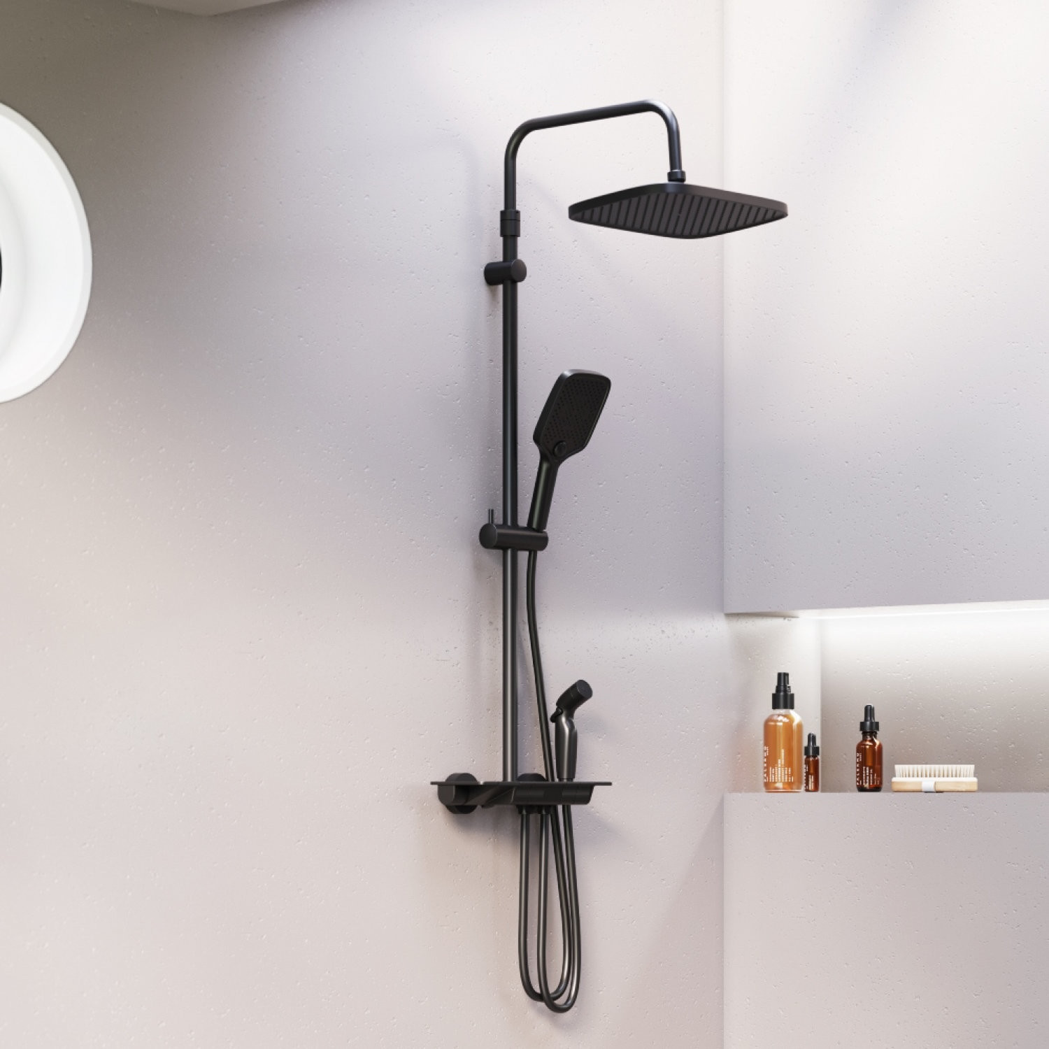 Душевая система с ванно-душевым термостатическим смесителем-полкой и гигиеническим душем
