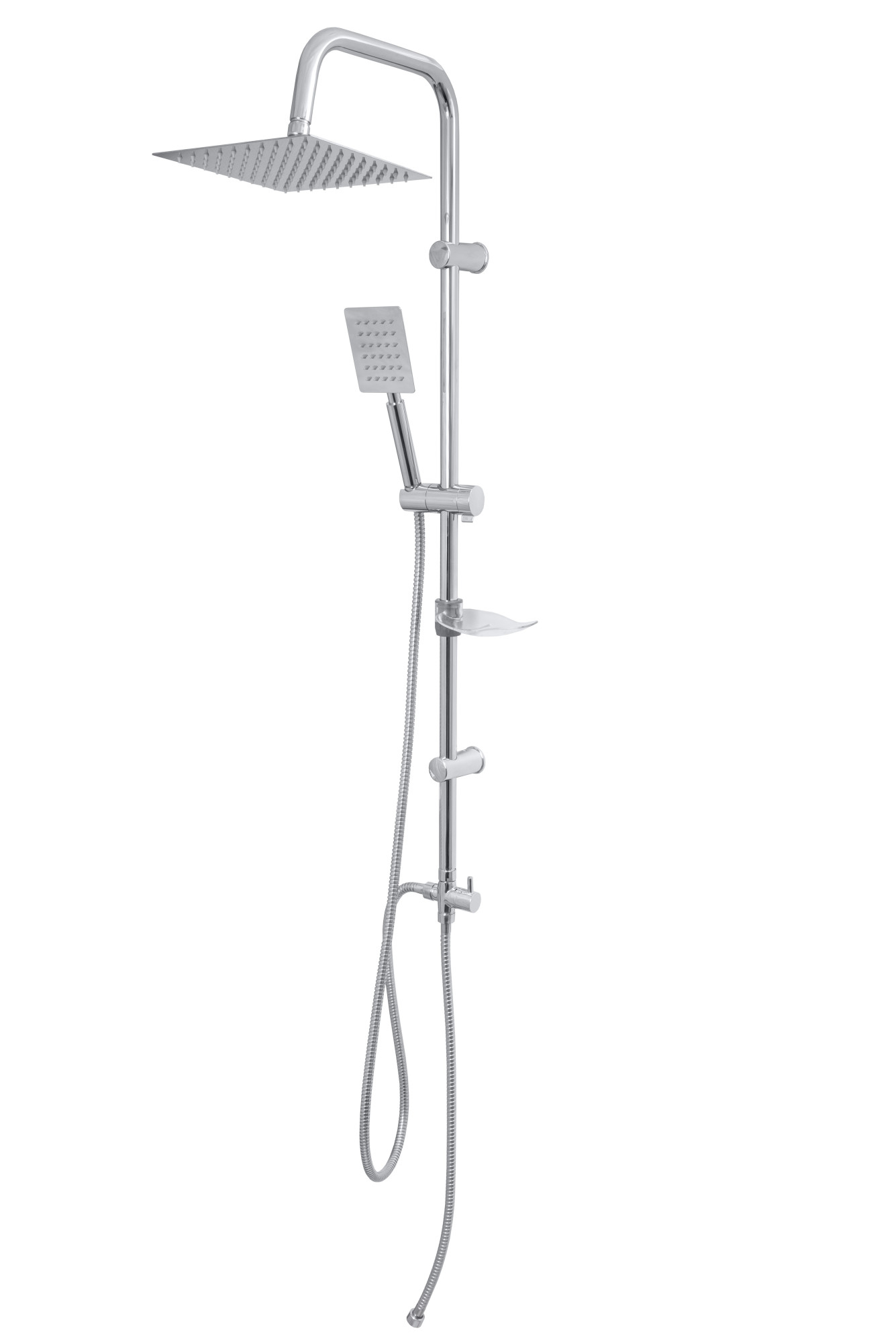 Комплектация: штанга, душевая лейка, душевой шланг, верхний душ, мыльница;