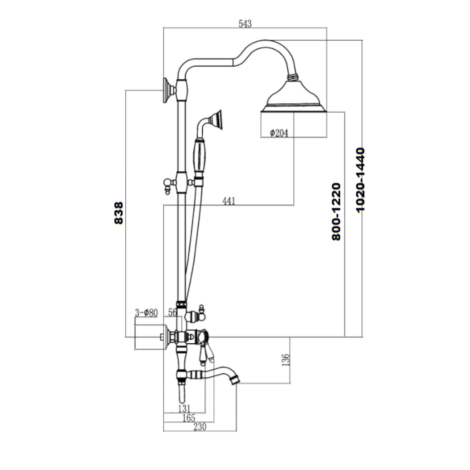 Душевая система Savol S-006613С. Тип переключателя: керамический картридж. Форма верхнего душ: круглая. Диаметр верхнего душа: 204 мм. Форма ручного душа: круглая. Регулируемый держатель ручного душа: да. Регулируемая высота стойки: да. Длина шланга: 1500 мм.
