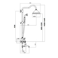Комплектация: верхний душ, душевая штанга с держателем лейки, ручной душ, смеситель, шланг;