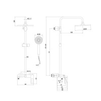 Комплектация: верхний душ, душевая штанга с держателем лейки, ручной душ, смеситель, шланг;