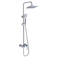 Комплектация: верхний душ, душевая штанга с держателем лейки, ручной душ, смеситель, шланг;