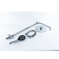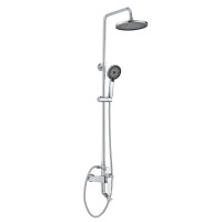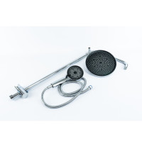 Комплектация: верхний душ, душевая штанга с держателем лейки, ручной душ, смеситель, шланг;