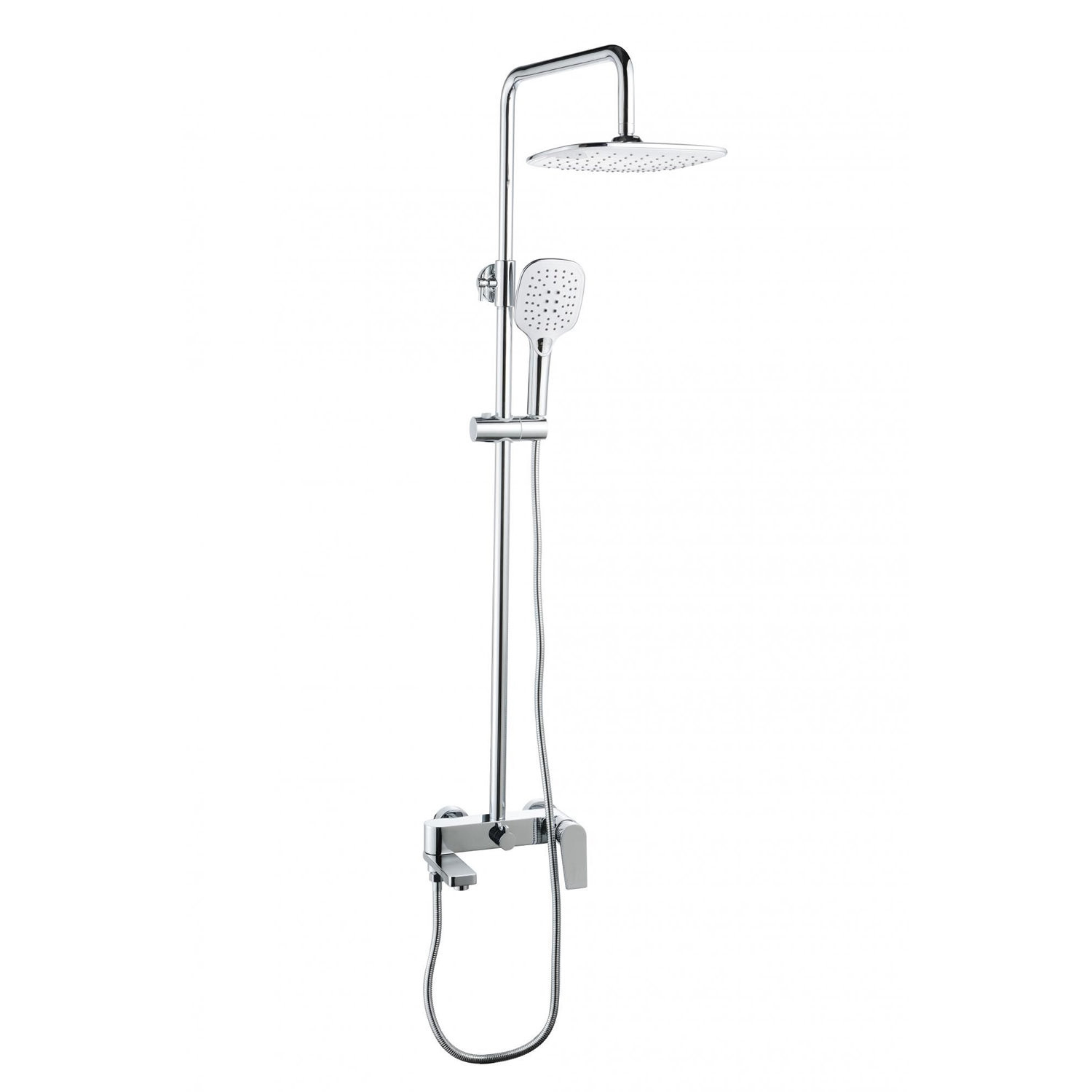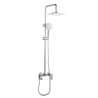 Комплектация: верхний душ, душевая штанга с держателем лейки, ручной душ, смеситель, шланг;