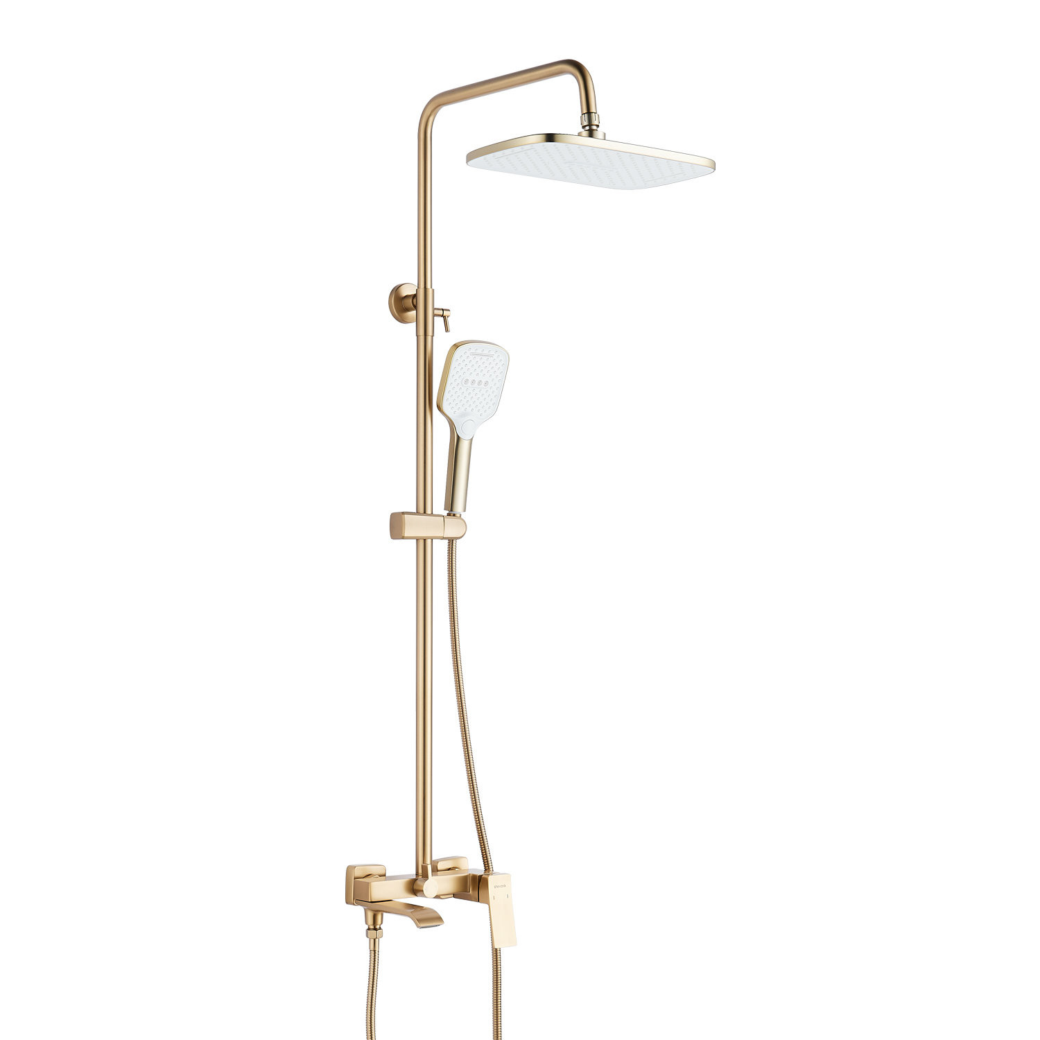 Душевая система Shevanik S4036G в современном цвете "золотой сатин" (матовое полированное золото) - идеальный выбор для вашей ванной комнаты! Изготовленная из высококачественной латуни, она обеспечивает прочность и долговечность использования.