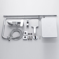 Душевая лейка из ABS пластика с двумя режимами работы также оснащена силиконовыми форсунками, что делает её легкой в уходе. Высота душевой лейки регулируется с помощью держателя на душевой штанге, а телескопическая конструкция штанги позволяет регулировать высоту всей системы, обеспечивая удобство использования для всех членов семьи.