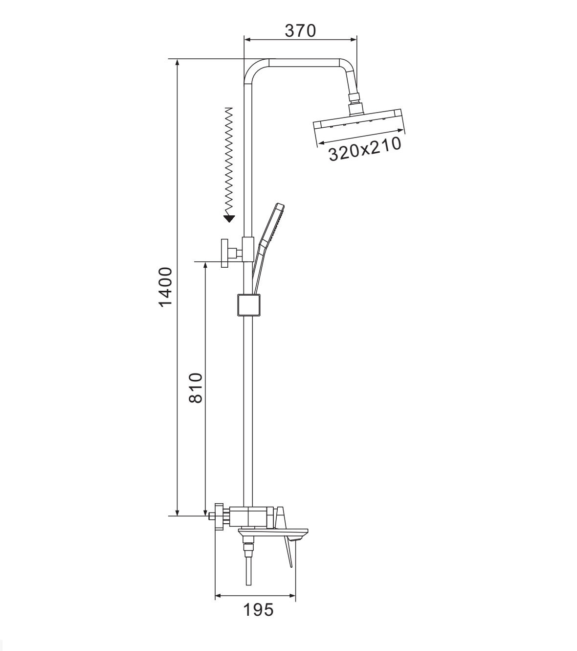Форма верхнего душа: прямоугольная;