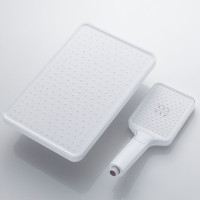 Центральным элементом композиции выступает внушительный верхний душ размером 320x210 мм, созданный из первоклассного ABS-пластика. Его инновационные силиконовые форсунки с функцией самоочистки и встроенной защитой от известковых отложений обеспечивают постоянный мощный поток воды. Благодаря встроенному шарниру вы можете легко настроить оптимальный угол наклона для максимального комфорта.