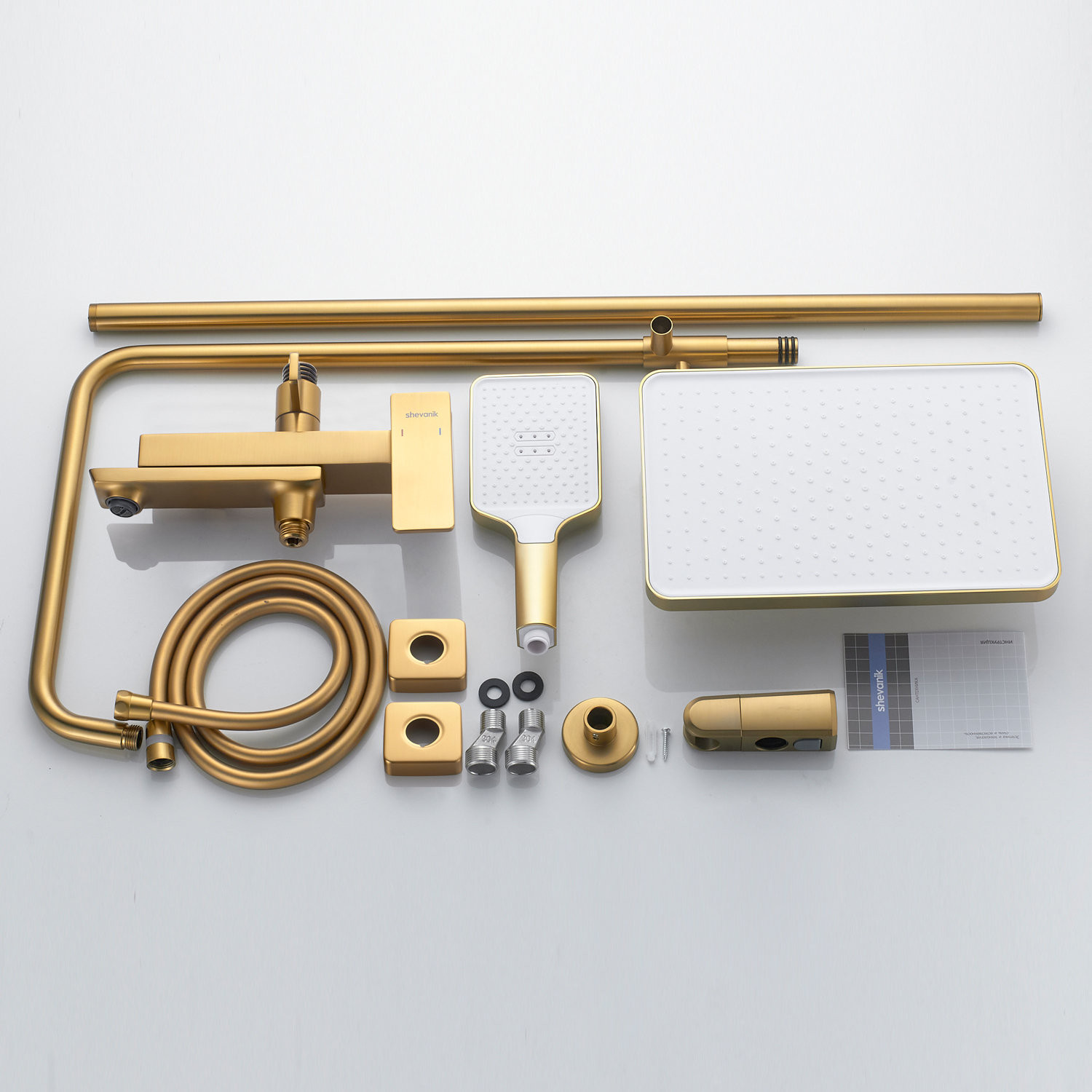 Откройте для себя новый уровень комфорта с премиальной душевой системой Shevanik S4436G в современном цвете "золотой сатин" (брашированное золото) — истинным воплощением современного дизайна и инновационных технологий в вашей ванной комнате.