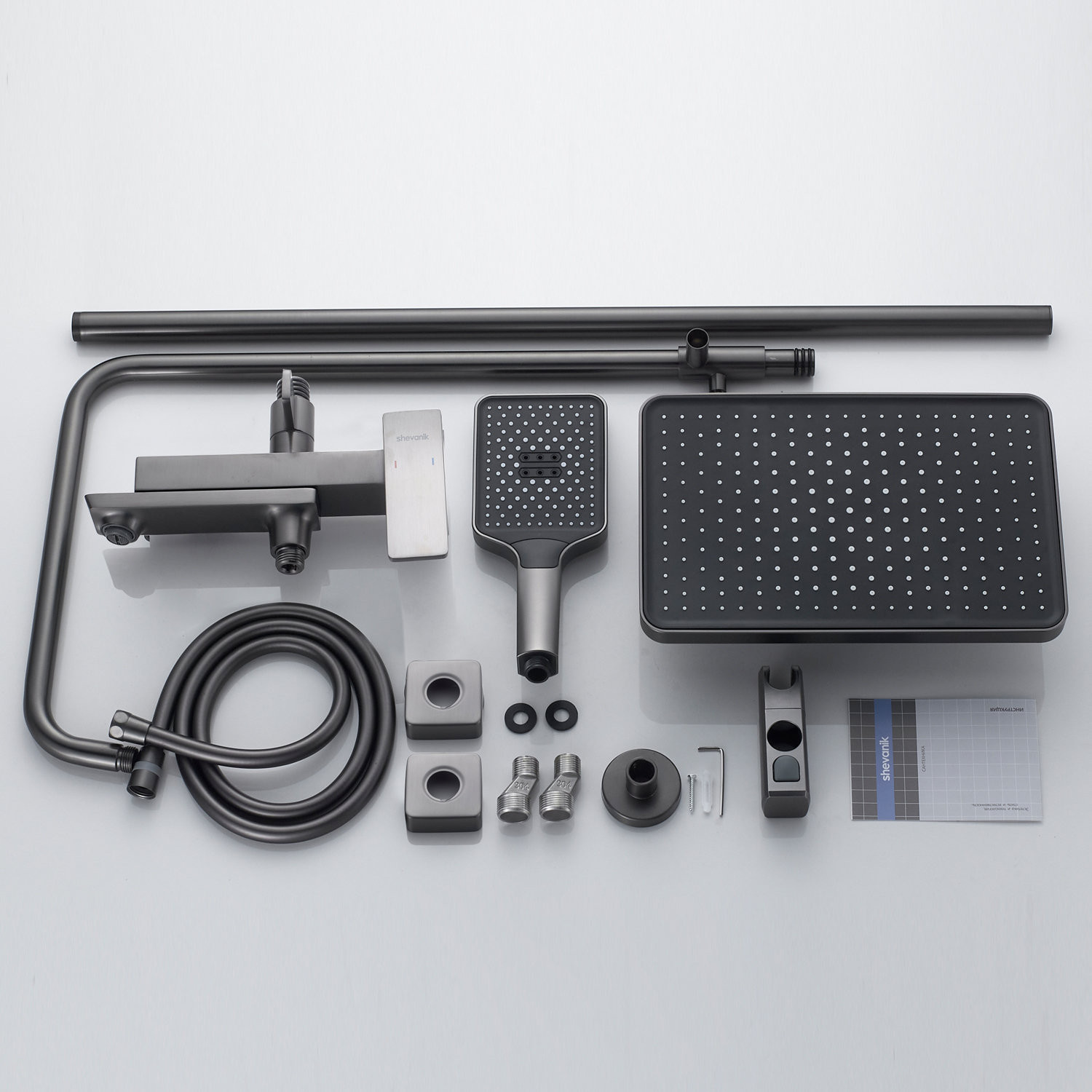 Откройте для себя новый уровень комфорта с премиальной душевой системой Shevanik S4436T в современном цвете "оружейная сталь" — истинным воплощением современного дизайна и инновационных технологий в вашей ванной комнате.