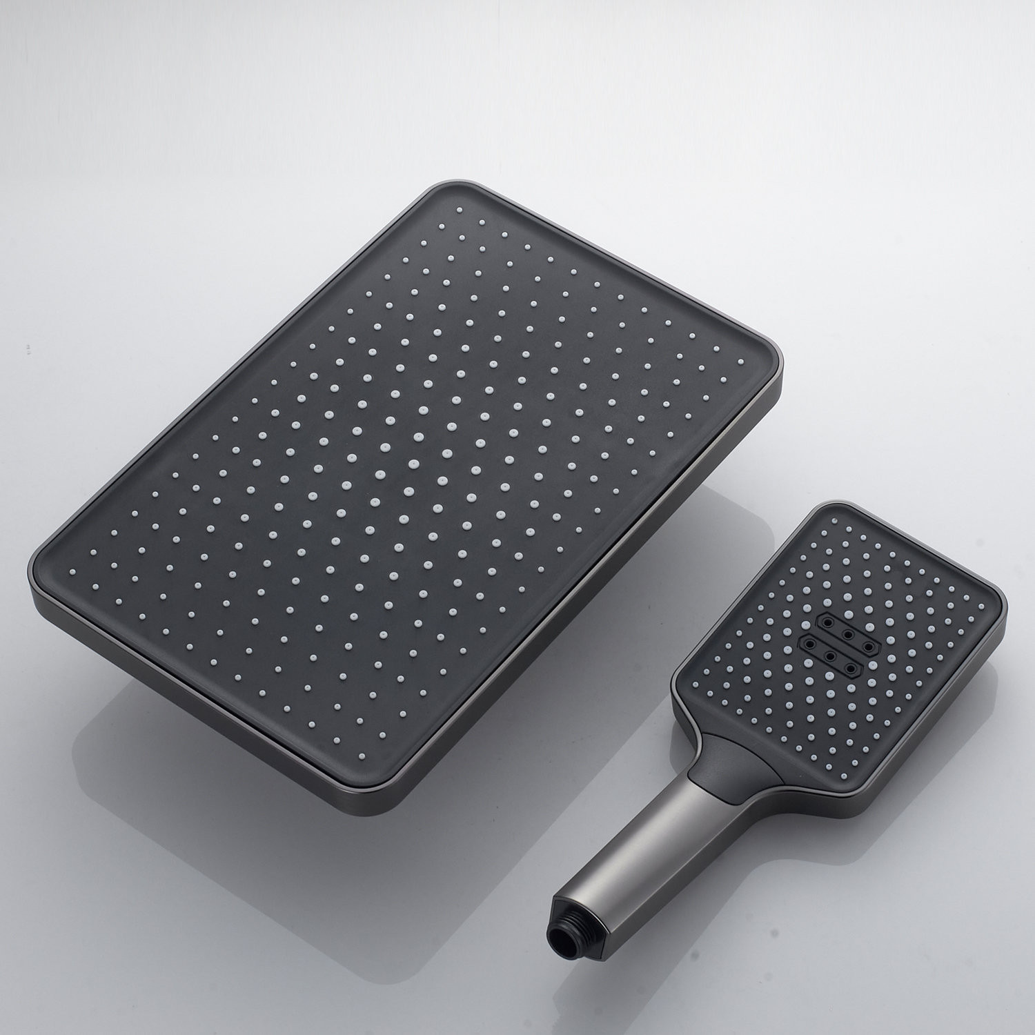 Центральным элементом композиции выступает внушительный верхний душ размером 320x210 мм, созданный из первоклассного ABS-пластика. Его инновационные силиконовые форсунки с функцией самоочистки и встроенной защитой от известковых отложений обеспечивают постоянный мощный поток воды. Благодаря встроенному шарниру вы можете легко настроить оптимальный угол наклона для максимального комфорта.