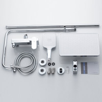 Поворотный излив душевой системы имеет аэратор и может быть компактно сложен при неиспользовании. Верхний душ размером 320x210 мм легко регулируется по наклону и оси благодаря встроенному шарниру и самоочищающимся силиконовым форсункам, обеспечивая чистый и сильный поток воды.