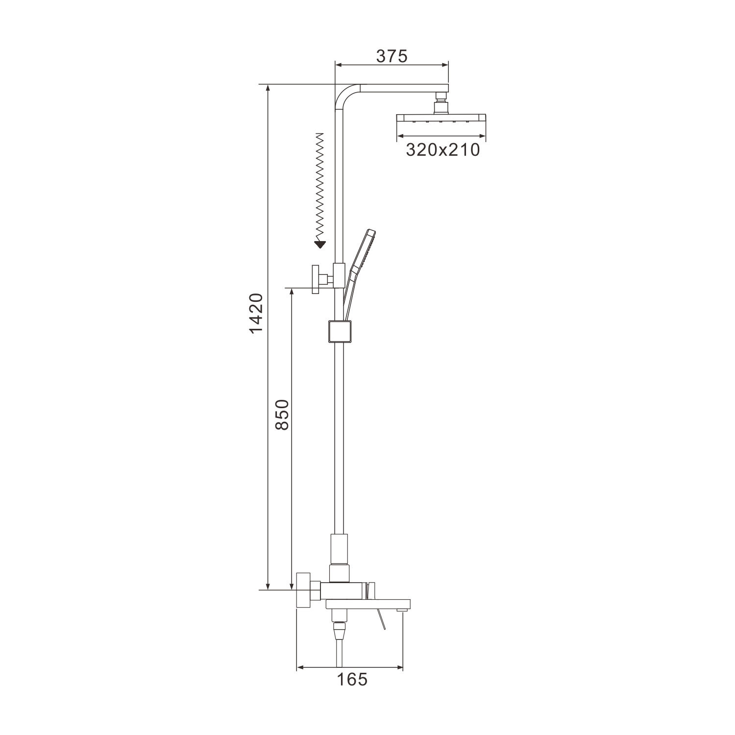 Верхний душ впечатляющих размеров 320x210 мм, выполненный из высококачественного ABS-пластика, оснащён инновационными самоочищающимися силиконовыми форсунками. Благодаря встроенному шарниру вы можете регулировать его наклон вдоль всей оси, а специальные форсунки надёжно защищают устройство от известкового налёта, гарантируя всегда чистый и мощный поток воды.