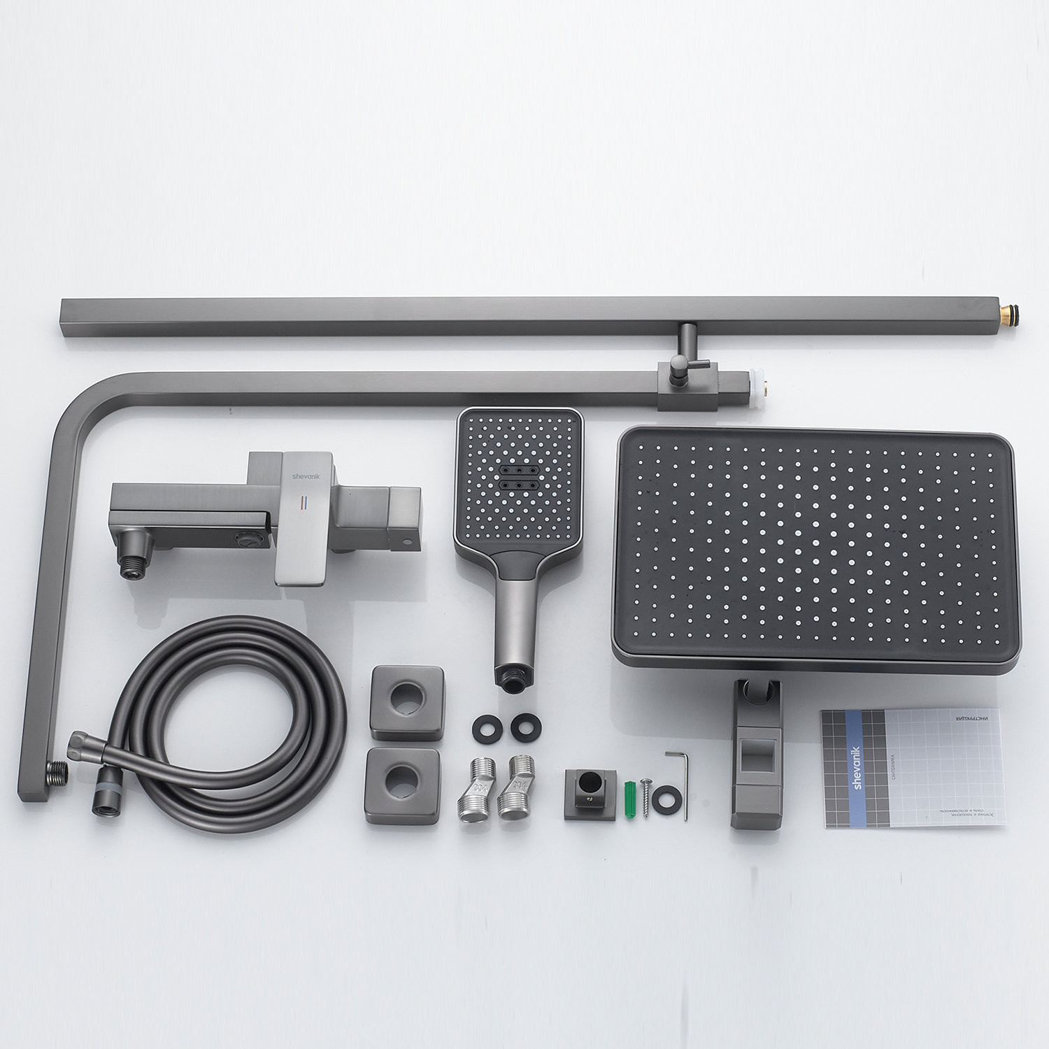 Погрузитесь в мир комфорта с душевой системой Shevanik S4636T в современном цвете "оружейная сталь" — настоящим произведением инженерного искусства для вашей ванной комнаты. Изготовленная из первоклассной латуни, эта система не только впечатляет своим благородным внешним видом, но и гарантирует длительную службу без потери качества.