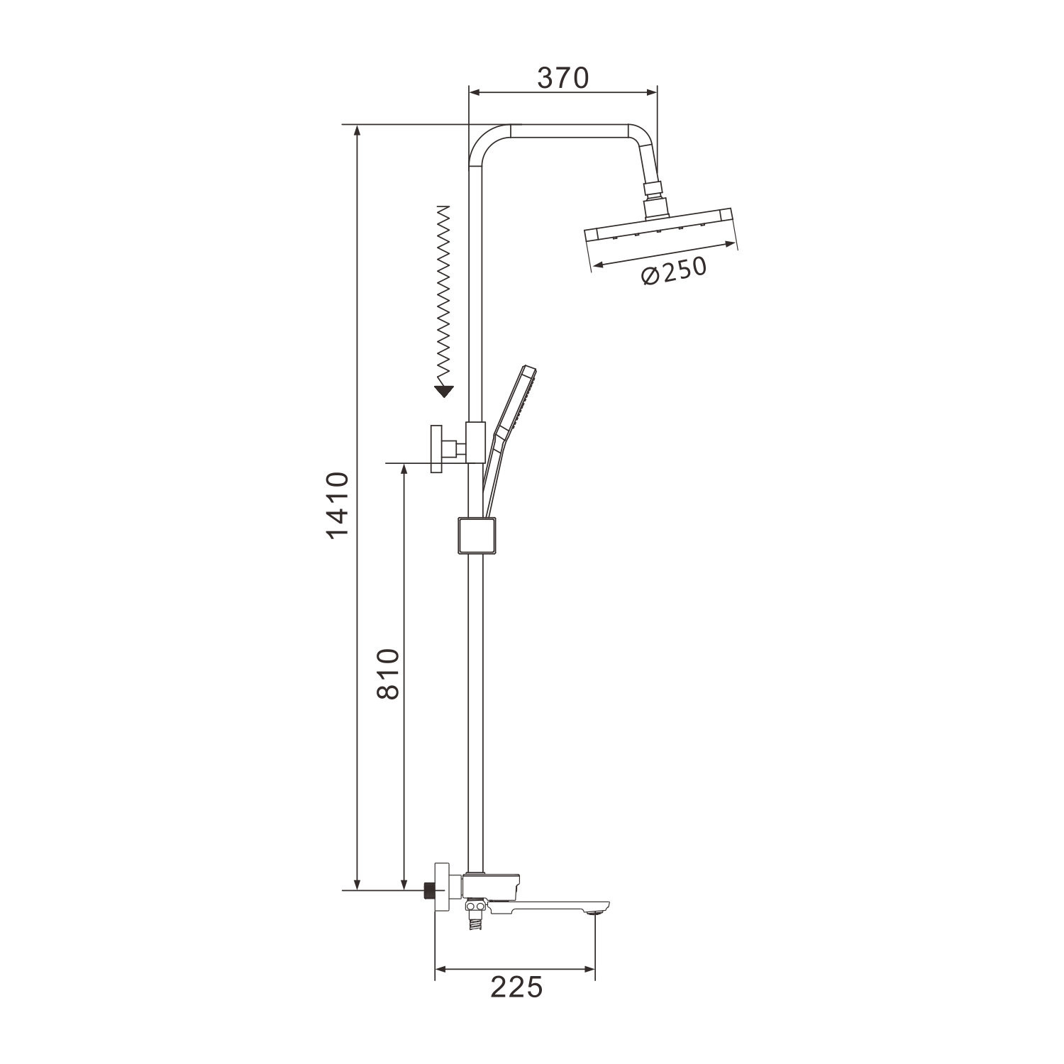 Размер верхнего душа, см: 25х25;