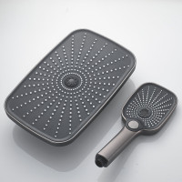 Верхний душ размером 300x190 мм из ABS-пластика регулируется по высоте благодаря телескопической штанге и по наклону с помощью встроенного шарнира, что обеспечивает максимальный комфорт и удобство использования. Самоочищающиеся силиконовые форсунки предотвращают образование известкового налета и сохраняют чистоту и силу потока воды.